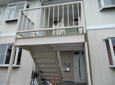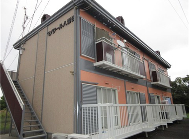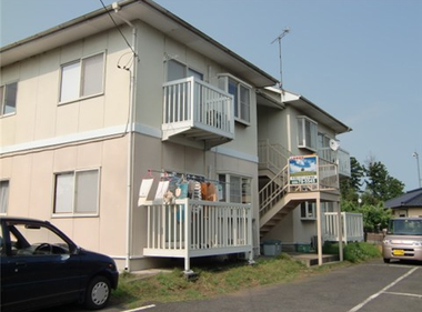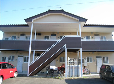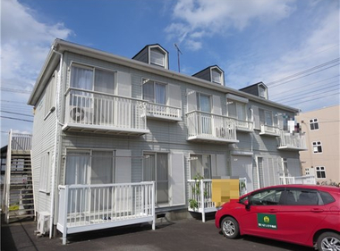 真ん中階段、2階角部屋です。 南向き。二方採光で日当たり良好。 駐車場2台無料です。